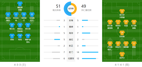 第14分钟,勒沃库森开出战术角球,阿米里传至禁区,希克凌空斩破门,勒沃库森1-0拜仁。