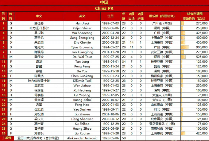 按照赛程,国足将在北京时间7月20日18:00迎来本届东亚杯首秀,对阵韩国队;7月24日18:20迎来第二个对手日本队;7月27日15:00迎来收官之战,对阵中国香港队,CCTV5将会对三场比赛进行直播。北京时间7月19日,国足已经准备就绪,“德转”中国站管理员朱艺透露了国足完整的新阵容,确认最终的东亚杯参赛名单,并且附上了球员对应的球衣号码。