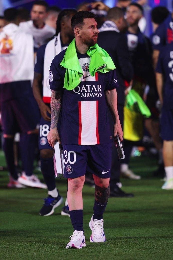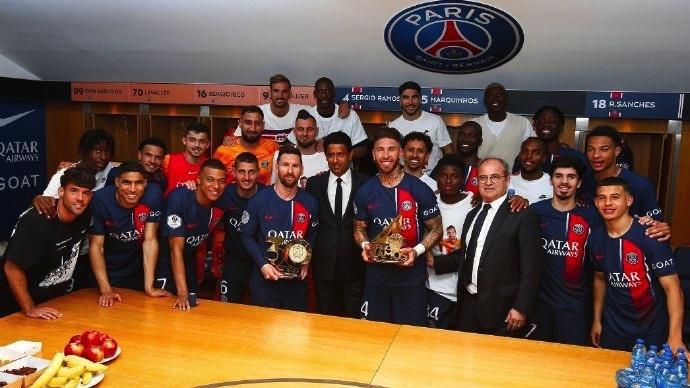 仪式上,梅西与内马尔、姆巴佩一起出场,这或许是巴黎三叉戟最后一次公开携手亮相了。令人寒心的是,当广播念到梅西名字时,仍有部分巴黎球迷发出嘘声。
