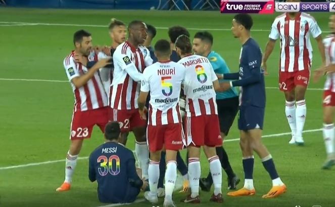 而比赛尾声,双方爆发了冲突,起因是梅西被对方放倒。当时比赛进行到第77分钟,梅西在弧顶处倒地,而阿雅克肖球员在犯规后,依然还有附加动作上前侵犯梅西。这也引发了巴黎球员的强烈不满,双方大打出手。