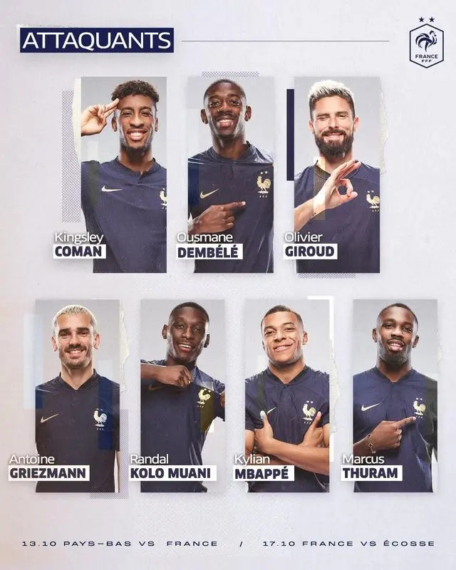 法国队新一期大名单:姆巴佩领衔,17岁扎伊尔-埃梅里入选