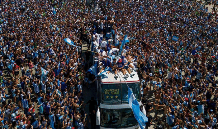 如今的阿根廷队是世界杯冠军得主,在2022年卡塔尔世界杯赛场上。阿根廷队虽然小组第一场1-2爆冷不敌沙特,但之后一路过关斩将,夺得世界杯冠军,决赛常规时间内2-2战平法国,加时赛梅西和姆巴佩进球、点球大战马丁内斯扑点,成就世界杯三冠王的伟业,也让阿根廷队吸粉无数。