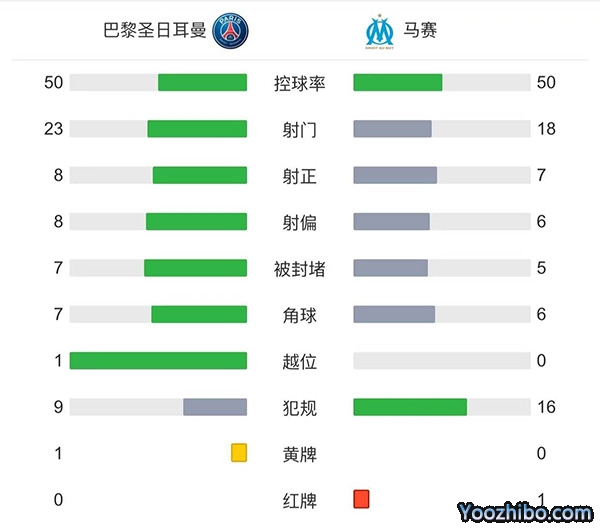 全场结束,巴黎1-0击败马赛。