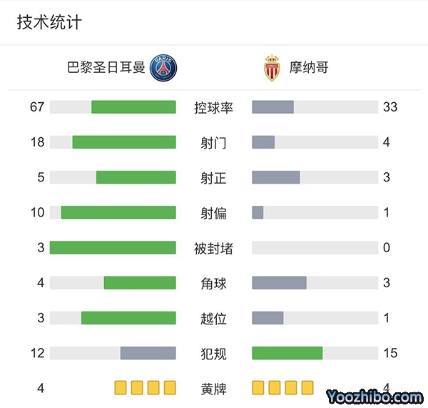 全场比赛结束,巴黎圣日耳曼主场1-1战平摩纳哥。