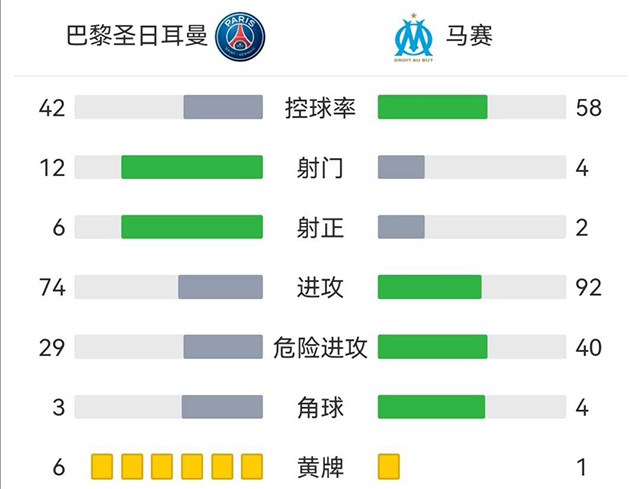 巴黎2-1马赛 内马尔姆巴佩破门梅西两球因越位被吹