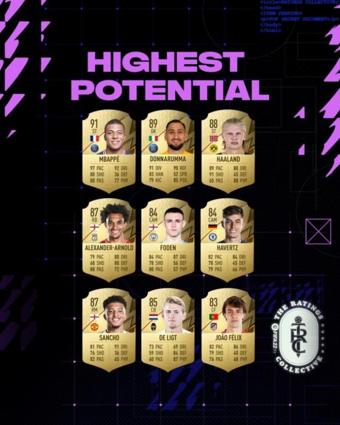 24直播网讯 姆巴佩在本作中的潜力高达91-95,意大利门将多纳鲁马则为89-93,多特蒙德锋霸哈兰德88-93,这三人排名前三。