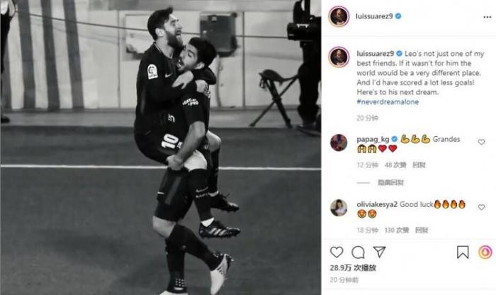苏亚雷斯:“梅西不只是我最好的朋友,如果不是他,世界将会是非常不同的地方。而且我也会少了很多进球!现在他将开启下一个梦想。”