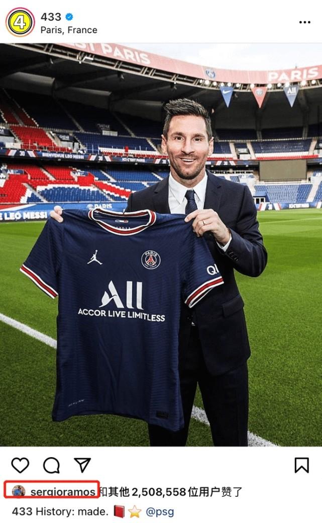死敌变队友!拉莫斯疯狂为梅西加盟巴黎动态点赞,两人或同场迎首秀