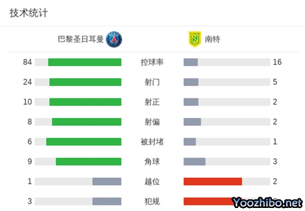 巴黎1-1南特终结联赛5连胜仍领跑 阿什拉夫破门李刚仁中柱
