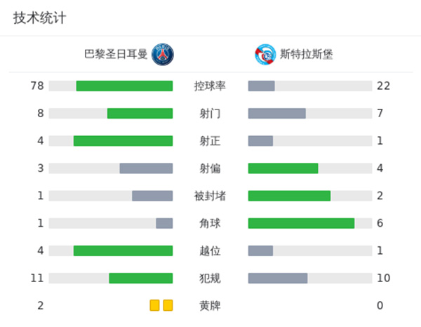 第9分钟,贡萨洛-拉莫斯禁区内被绊倒,主裁判果断判罚点球。第10分钟,姆巴佩主罚点球命中,巴黎1-0领先斯特拉斯堡。