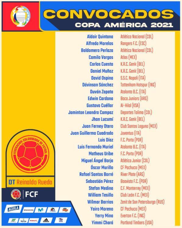 哥伦比亚美洲杯大名单:
