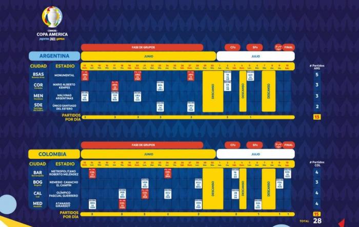 24直播网2月27日讯 2021年美洲杯将于北京时间6月14日—7月11日在阿根廷与哥伦比亚进行,目前比赛时间安排已经出炉。