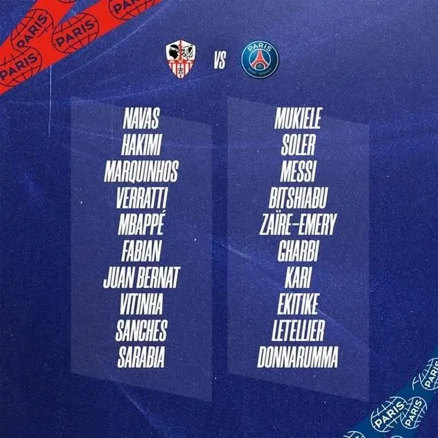 大巴黎本场名单如下: