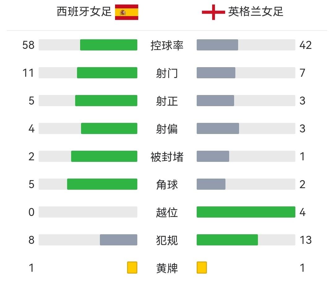 最终全场比赛结束,西班牙女足1-0英格兰女足。