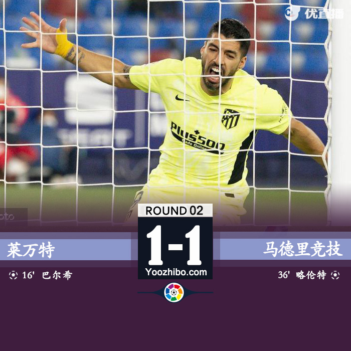 24直播网2月18日讯 北京时间2月18日02:00,西甲第2轮进行一场补赛,马德里竞技客场挑战莱万特。上半场,巴尔迪帮助莱万特取得领先,略伦特远射将比分扳平。下半场,科雷亚补射空门不进。最终,马德里竞技1-1客场憾平莱万特,11轮不败,少赛一场6分优势继续领跑积分榜。
