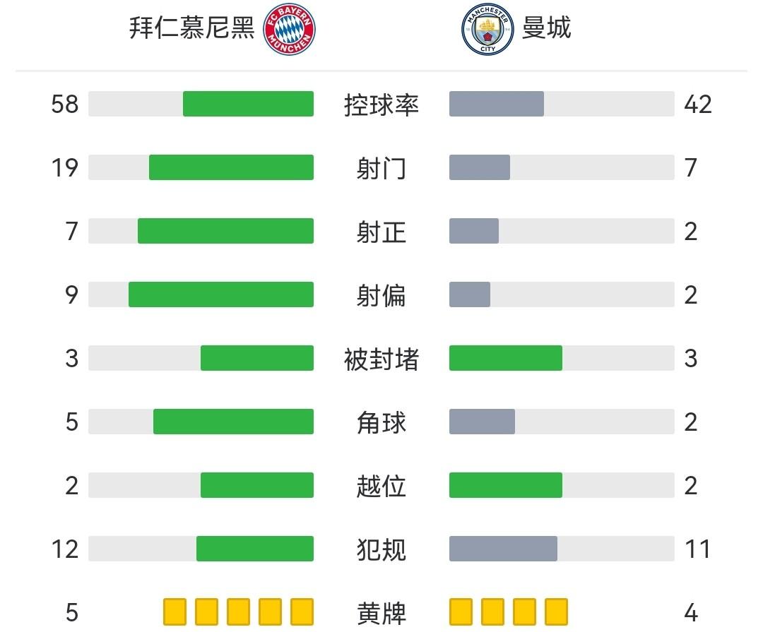 最终曼城1-1拜仁,总比分4-1晋级四强。