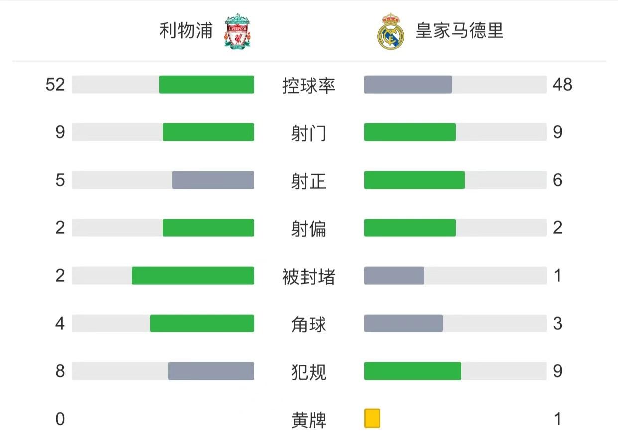 全场比赛结束,最终皇马连扳五球客场5-2逆转利物浦。