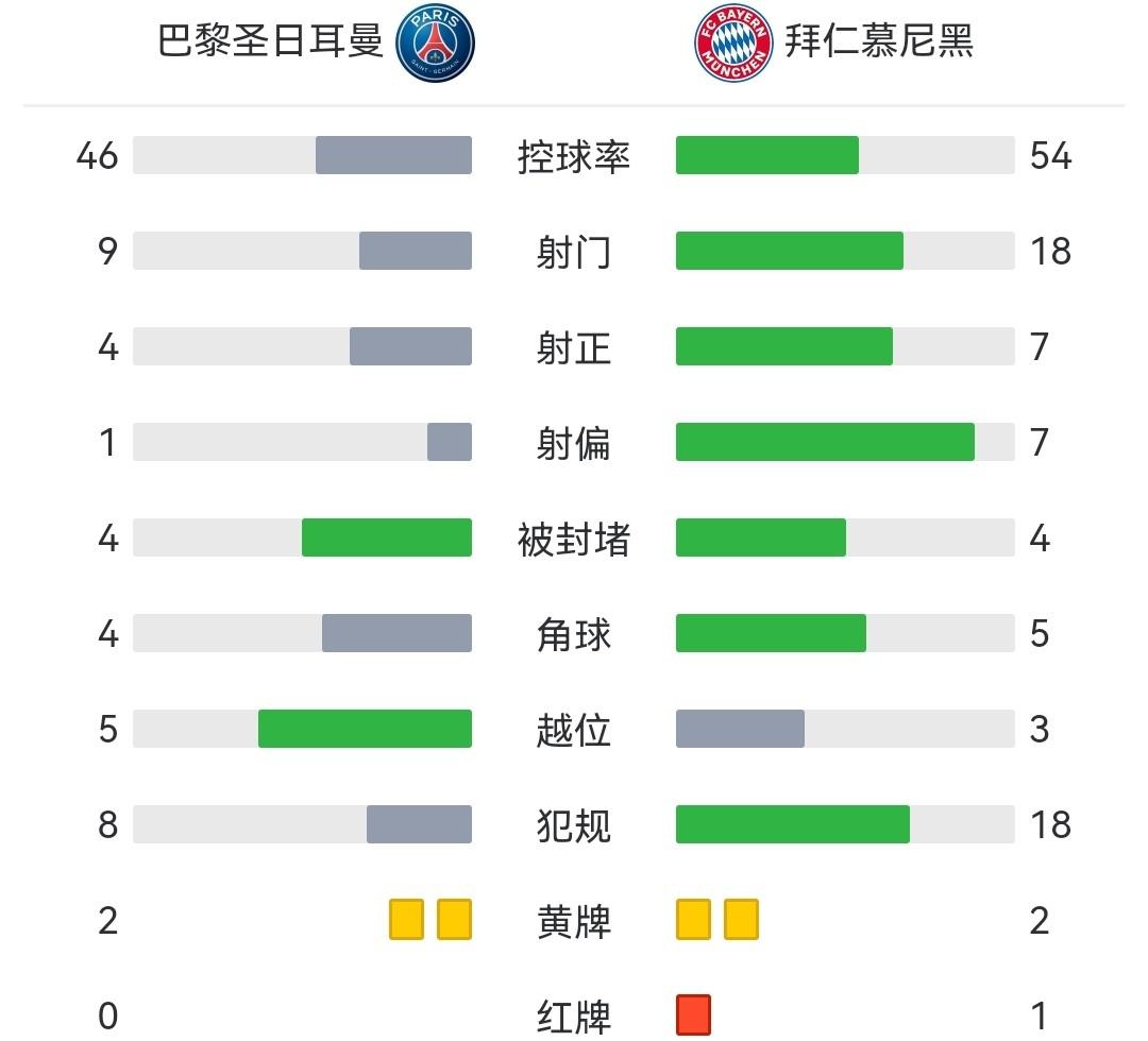 来源:24直播网02-15 07:00 24直播网讯:北京时间2月15日04:00,欧冠1/8决赛首回合迎来一场火星撞地球的较量,巴黎圣日耳曼坐镇主场王子公园体育场迎战拜仁慕尼黑,本场主裁判为奥利弗。上半场,拜仁占据场上主动,科曼突破屡造威胁;巴黎仅1脚攻门0射正,拉莫斯发挥神勇。下半场,阿方索-戴维斯助攻科曼一击制胜弑旧主,舒波-莫廷中柱,姆巴佩替补登场两粒进球无效,帕瓦尔累计两黄被罚下。最终,巴黎主场0-1不敌拜仁。