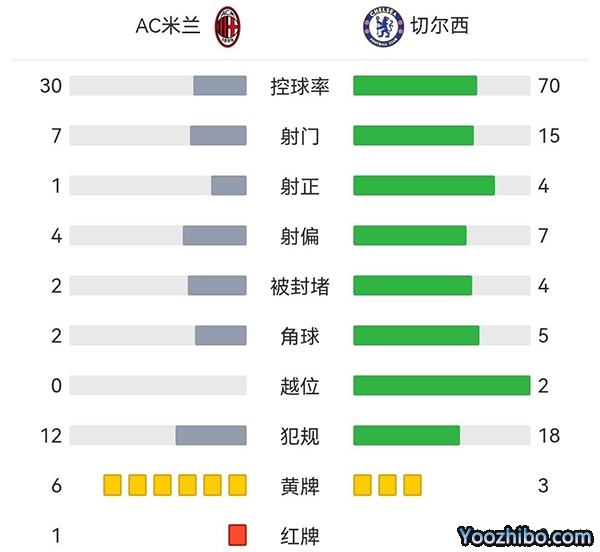 全场结束,最终切尔西2-0击败AC米兰。