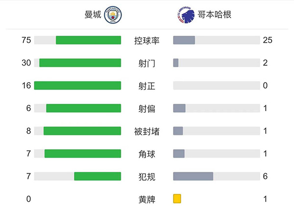 曼城5-0哥本哈根 哈兰德半场双响马赫雷斯传射