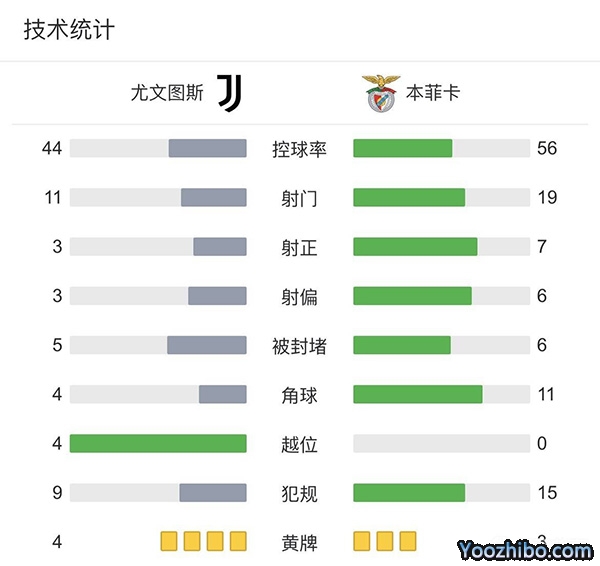 全场比赛结束,尤文图斯主场1-2遭本菲卡逆转。