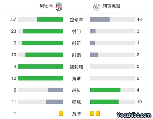 全场比赛结束,利物浦2-1战胜阿贾克斯。