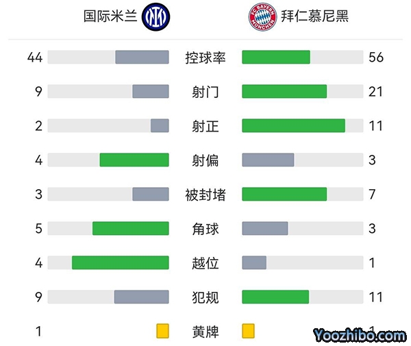 全场比赛结束,拜仁慕尼黑客场2-0战胜国际米兰。