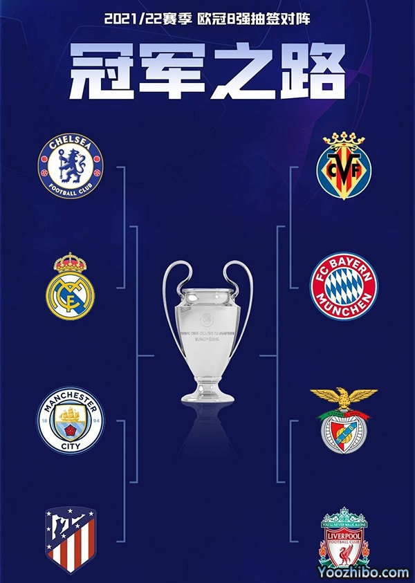 欧冠1/4决赛抽签结果:利物浦拜仁上上签 曼城马竞强强对决