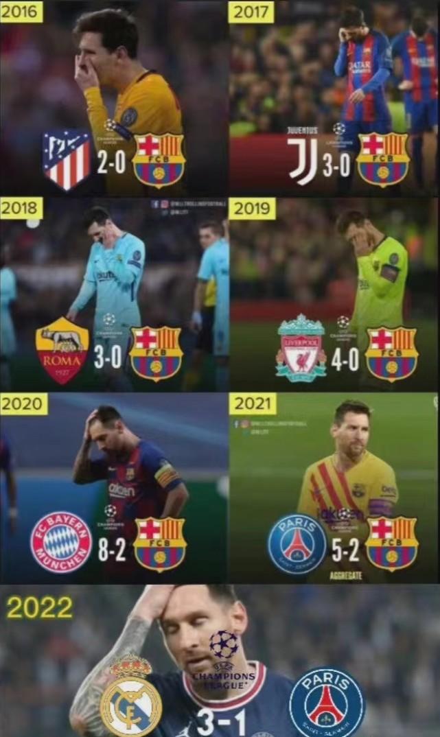 值得注意的是,随着大巴黎出局,梅西职业生涯中第一次连续两年成为欧冠16郎。而在2015年跟随巴萨夺冠后,梅西已经在最近7个赛季欧冠均遭遇了被逆转或者大比分输球惨案的打击,这确实让人唏嘘不已。