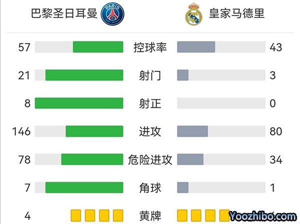 全场比赛结束,巴黎圣日耳曼1-0皇家马德里。