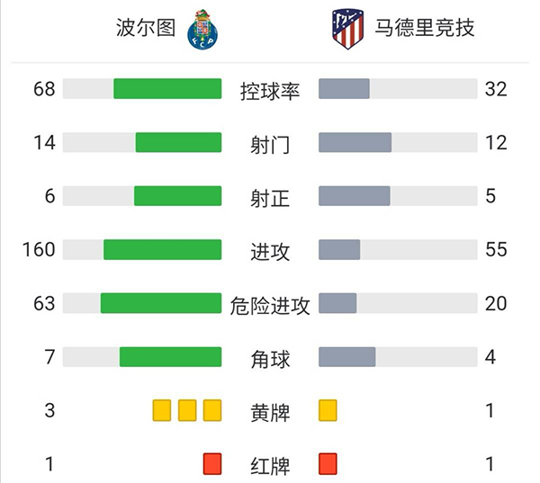来源:24直播网12-08 09:19 24直播网讯:北京时间12月8日04:00,欧冠小组赛B组第6轮迎来一场出线关键战,马德里竞技客场挑战波尔图。上半场,苏亚雷斯开场伤退,格列兹曼失良机,奥布拉克屡次救险。下半场,格列兹曼传射建功,卡拉斯科、温德尔与波尔图替补门将马尔凯辛先后在冲突中染红,安赫尔-科雷亚与德保罗终场前接连破门杀死悬念,塞尔吉奥-奥利韦拉点射扳回一城。最终,马竞客场3-1击败波尔图,晋级欧冠16强;后者则进入欧联杯淘汰赛附加赛。