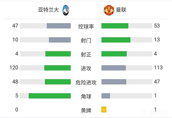 第11分钟,萨帕左路倒三角回敲,伊利契奇不停球推射,皮球从德赫亚腋下钻入球门,亚特兰大1-0曼联!