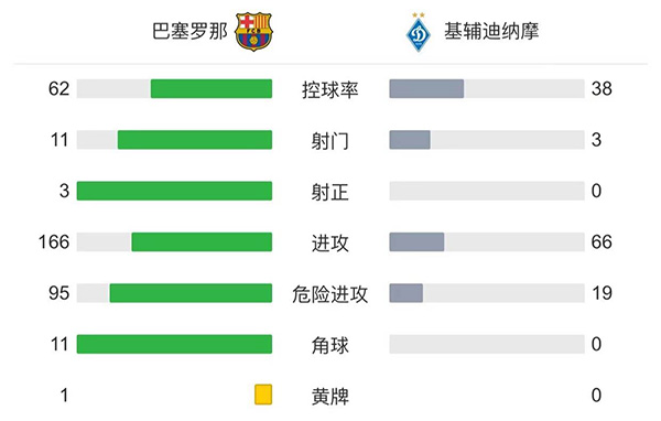 全场比赛结束,巴塞罗那主场1-0小胜基辅迪纳摩。