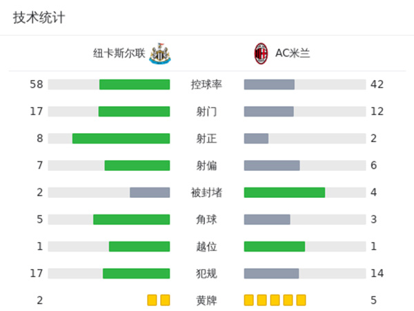 米兰2-1纽卡 双双出局!米兰第三将战欧联