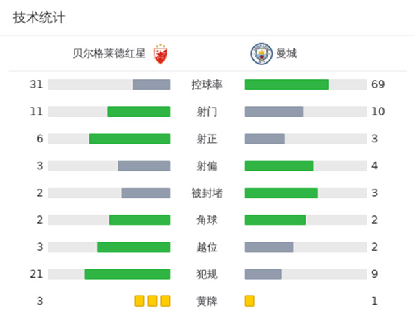 曼城3-2红星 汉密尔顿首秀破门+造点菲利普斯首球