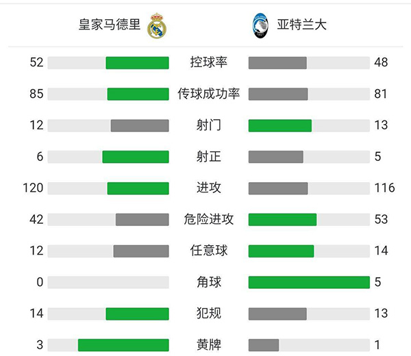 全场比赛结束,皇马主场3-1总比分4-1淘汰亚特兰大。