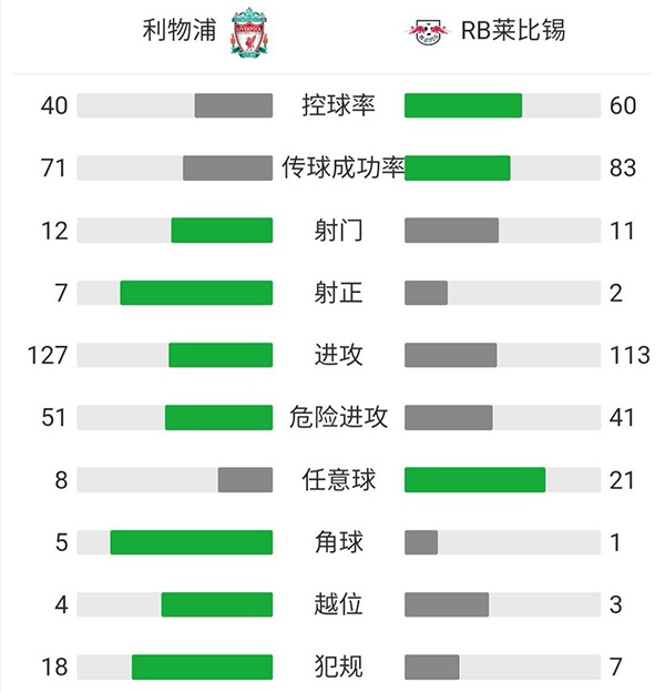 全场比赛结束,利物浦2-0战胜莱比锡,总比分利物浦4-0莱比锡晋级欧冠八强。