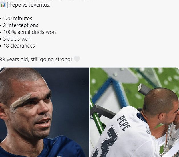 很多人都以为佩佩离开皇马之后就进入到了养老模式,但是很显然佩佩的表现依旧是顶级的,他的经验和防守预判都令对手感到无奈,如今带队挺进欧冠八强,淘汰国家队队友C罗的尤文图斯,就证明了这一点。