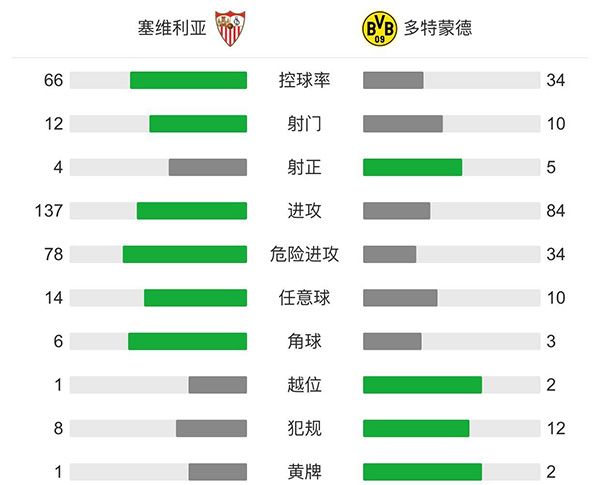 3分钟补时后全场比赛结束,最终多特客场3-2击败塞维利亚。