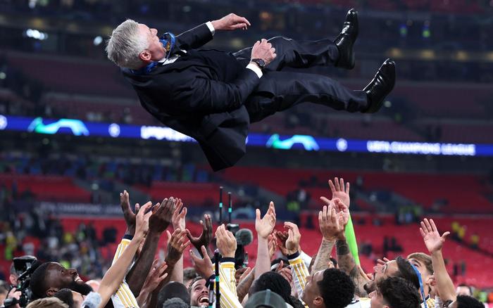 24直播网讯 23/24赛季欧冠决赛,皇马击败多特夺冠,安切洛蒂拿下执教生涯第5冠!