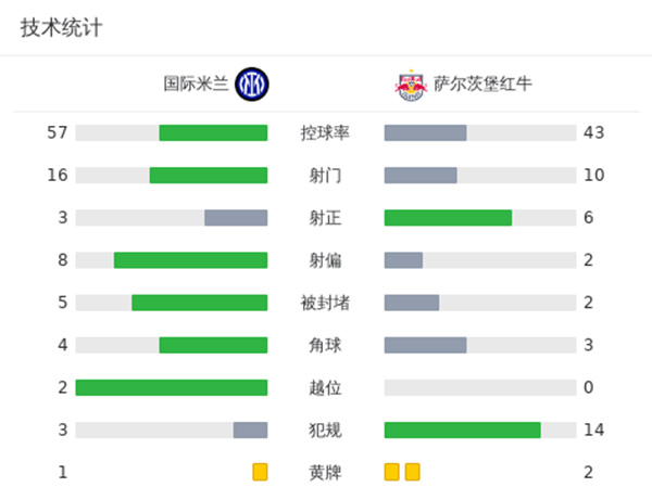 第19分钟,国米首开记录,姆希塔良右路传到禁区前点弗拉泰西后脚跟做球后点桑切斯跟上推射破门,国米1-0萨尔茨堡红牛。