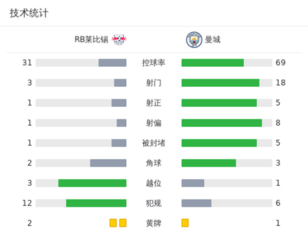 替补未出场:18-奥尔特加、33-卡森、4-菲利普斯、5-斯通斯、8-科瓦西奇、21-戈麦斯、52-鲍勃