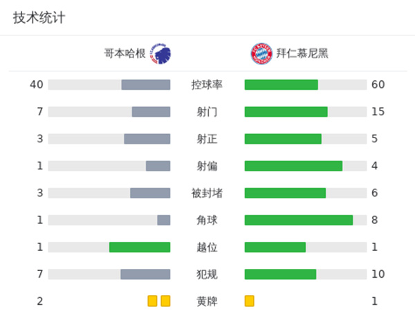 第55分钟,克莱松禁区内打门,金玟哉解围没有踢远,莱拉格凌空扫射弹地入网,哥本哈根1-0拜仁慕尼黑!