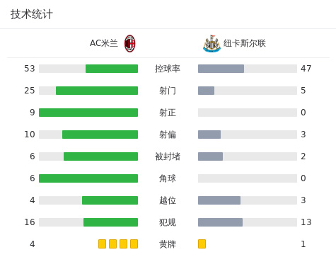米兰0-0纽卡 奇克&迈尼昂伤退莱奥失良机米兰25次射门无果
