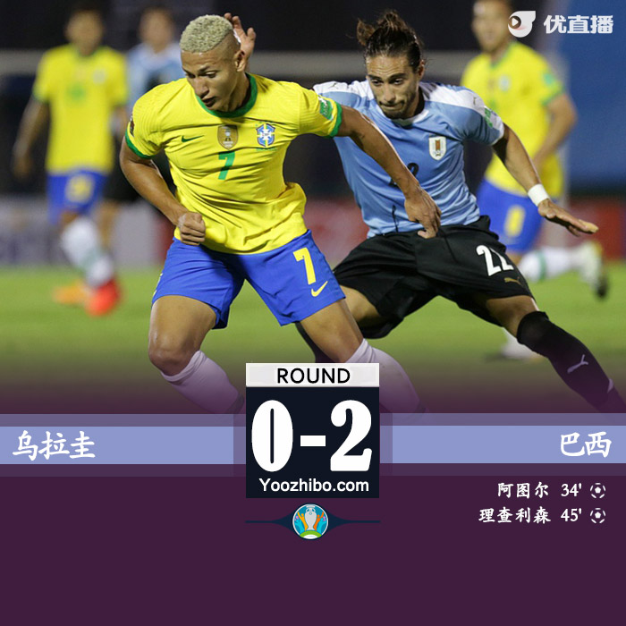 第11分钟,南德斯禁区右侧传中,卡瓦尼头球攻门高出横梁。第20分钟,德拉克鲁斯角球传中,努涅斯禁区内射门偏出右门柱。第27分钟,乌拉圭中场积极逼抢将球断下,中圈右吊送禁区,蒂亚戈-席尔瓦卡位卡瓦尼率先破坏。第30分钟,外围努涅斯推传,禁区内左下克鲁斯遭马尔基尼奥斯贴防后倒地,VAR查阅后无点球。第34分钟,巴西取得领先,热苏斯点球点回传,阿图尔禁区弧顶射门打在防守球员身上折射入网,1-0!阿图尔代表国家队第21次出场,收获了桑巴军团生涯处子球。