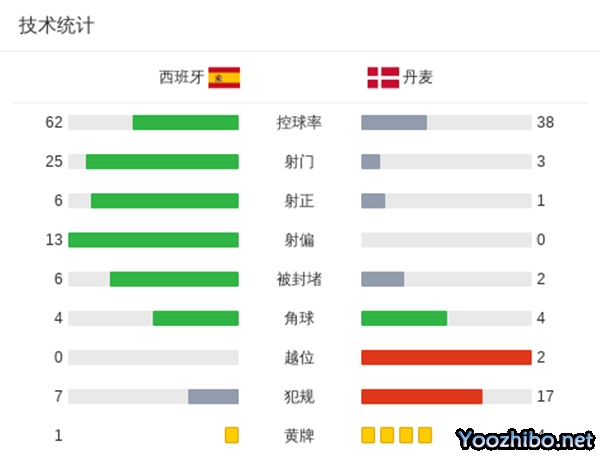 西班牙1-0丹麦登顶D组 祖比门迪制胜西班牙全场狂射25脚