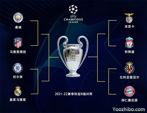 附欧冠1/4决赛对阵(排名在前的先踢主场):