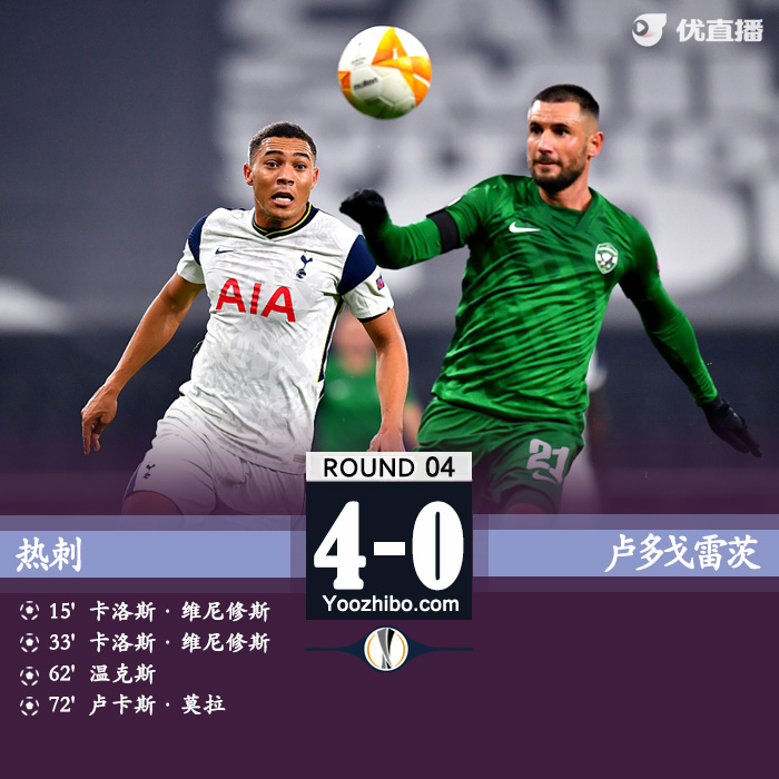 24直播网讯:北京时间11月27日4时(英国当地时间26日20时),欧联杯小组赛J组第4轮开始第2场较量,热刺主场4比0轻取卢多戈雷茨,积9分领跑。卡洛斯-威尼修斯首度为热刺破门,梅开二度且助攻小卢卡斯得分。温克斯超远吊射得手。本-戴维斯中柱。