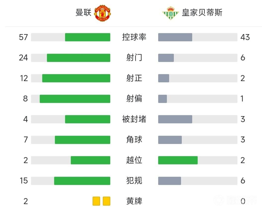 第57分钟,曼联扩大比分!左路角球卢克肖开到禁区,前点B费头球破门,曼联3-1贝蒂斯。