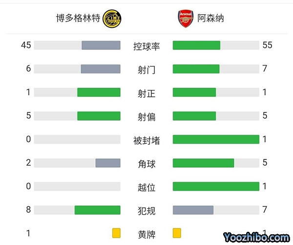全场结束,阿森纳1-0博德闪耀。
